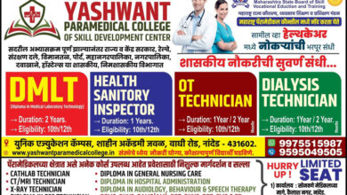 नांदेड : शहरातील प्रतिष्ठित शैक्षणिक संस्थांपैकी एक असलेल्या यशवंत पॅरामेडिकल कॉलेज तर्फे DMLT (डिप्लोमा इन मेडिकल लॅबोरेटरी टेक्नॉलॉजी) कोर्ससाठी…