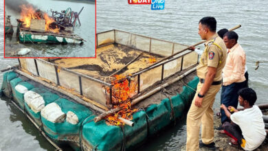 नांदेड जिल्ह्यात अवैध रेती उपशावर मोठी कारवाई: ३ लाखांहून अधिक किमतीचा मुद्देमाल जप्त, तराफे नष्ट