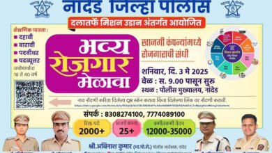 नांदेड: जिल्हा पोलीस दलातर्फे ‘मिशन उडान’ अंतर्गत भव्य रोजगार मेळाव्याचे आयोजन – युवकांसाठी सुवर्णसंधी