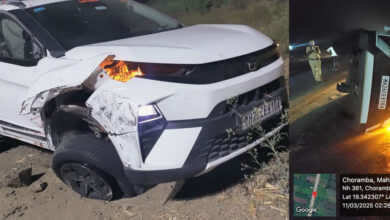 नांदेड-अर्धापूर रोड चोरंबा टोल नाक्याजवळ चार चाकी वाहनाचा भीषण अपघात.