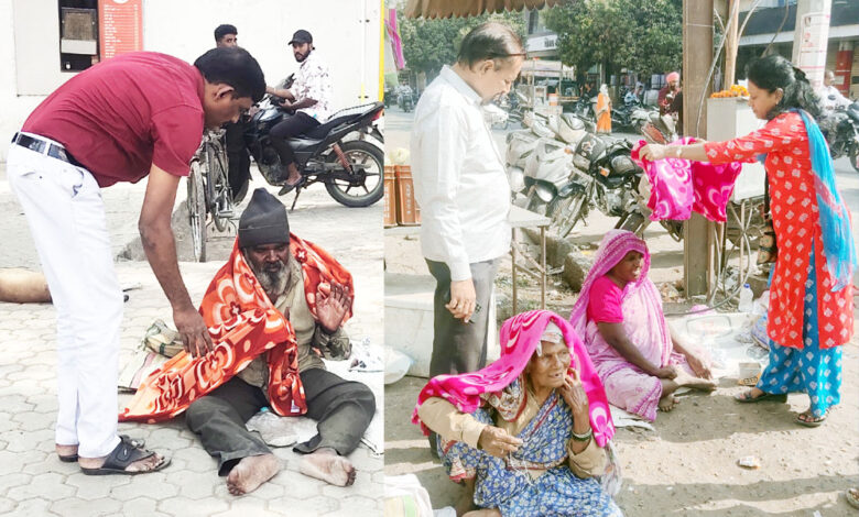 वाघमारे दाम्पत्याचा सेवाभावी उपक्रम: गरिबांसाठी भोजनदान व चादर वाटप