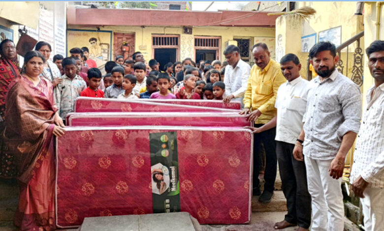 अंध विद्यार्थ्यासाठी सौ. प्रियंका क्षिरसागर, गवते यांच्या वतीने दहा निलकमल गाद्या भेट