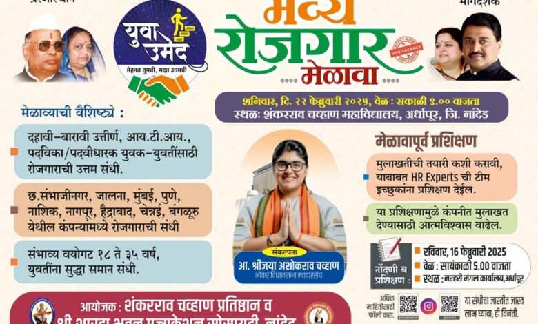 अर्धापूर व नांदेड प्रतिनिधी – ता.२२ रोजी अर्धापूर येथील शंकरराव चव्हाण महाविद्यालयाच्या प्रांगणात खा.अशोक चव्हाण यांच्या मार्गदर्शनात व आ.श्रीजया चव्हाण यांच्या संकल्पनेतून झालेल्या भव्य रोजगार मेळाव्याबाबद गेली २ महिन्यापासून तयारी, जनजागृती व प्रसिद्धी करण्यात आल्याने याबाबत तालुक्यातील व जिल्ह्यातील सर्व पत्रकारांना आनंद झाला त्याचे कारण कि,एवढा मोठा कार्यक्रम म्हटले की पत्रकारांना जाहिरात १००% मिळणार कारण पत्रकारांना पेपर मधील छापलेल्या बातमीचे नव्हे तर जाहिरातीतून पैसे मिळतात.