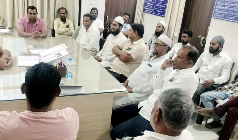 मुदखेड पोलीस ठाणे येथील जिल्हा विशेष शाखेचे प्रमुख हेड कॉन्स्टेबल किशोर पाटील यांनी ठाण्याच्या दालनात शांतता बैठकीचे आयोजनाच्या सर्वांना सूचना करण्यात आली होती याप्रसंगी उपस्थित मुस्लिम नागरिकांनी आपल्या द्वारे पोलीस प्रशासनास सूचना करत सहकार्य करणार असल्याची ग्वाही वाही दिली याप्रसंगी माजी उपाध्यक्ष तथा काँग्रेसचे ज्येष्ठ नेते करीम खान साब , माजी नगरसेविका प्रतिनिधी अब्दुल सलाम, मौलाना अशफाक मैनोदीन, काजी मशिदीचे अध्यक्ष बाबुभाई,