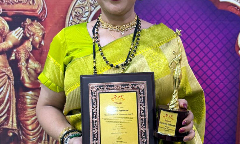 डॉ. सान्वी जेठवानी यांना ‘ब्लूम वुमन ऑफ सबस्टन्स’ पुरस्काराने सन्मानित