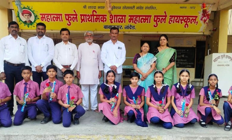 नांदेड,४- येथील श्री शारदा भवन एज्युकेशन सोसायटी संचलित महात्मा फुले हायस्कूल, बाबानगर येथील विद्यार्थ्यांनी राष्ट्रीय आर्थिकदृष्ट्या दुर्बल घटकांसाठीच्या शिष्यवृत्ती योजना परीक्षेत (NMMS) यशाची परंपरा यंदाही कायम राखली आहे.