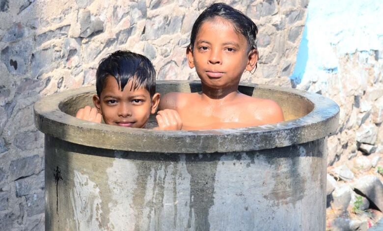 उन्हाचा तडाखा असह्य गरमीपासून बचावासाठी पाण्याच्या टाकीतच थंडावा शोधणाऱ्या बालकांची अनोखी शक्कल!