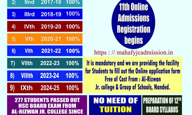 अल् रिजवान इंग्रजी ज्युनिअर कॉलेजमध्ये अकरावी (Arts, Commerce, Science) वर्गांसाठी ऑनलाईन प्रवेश प्रक्रिया सुरू