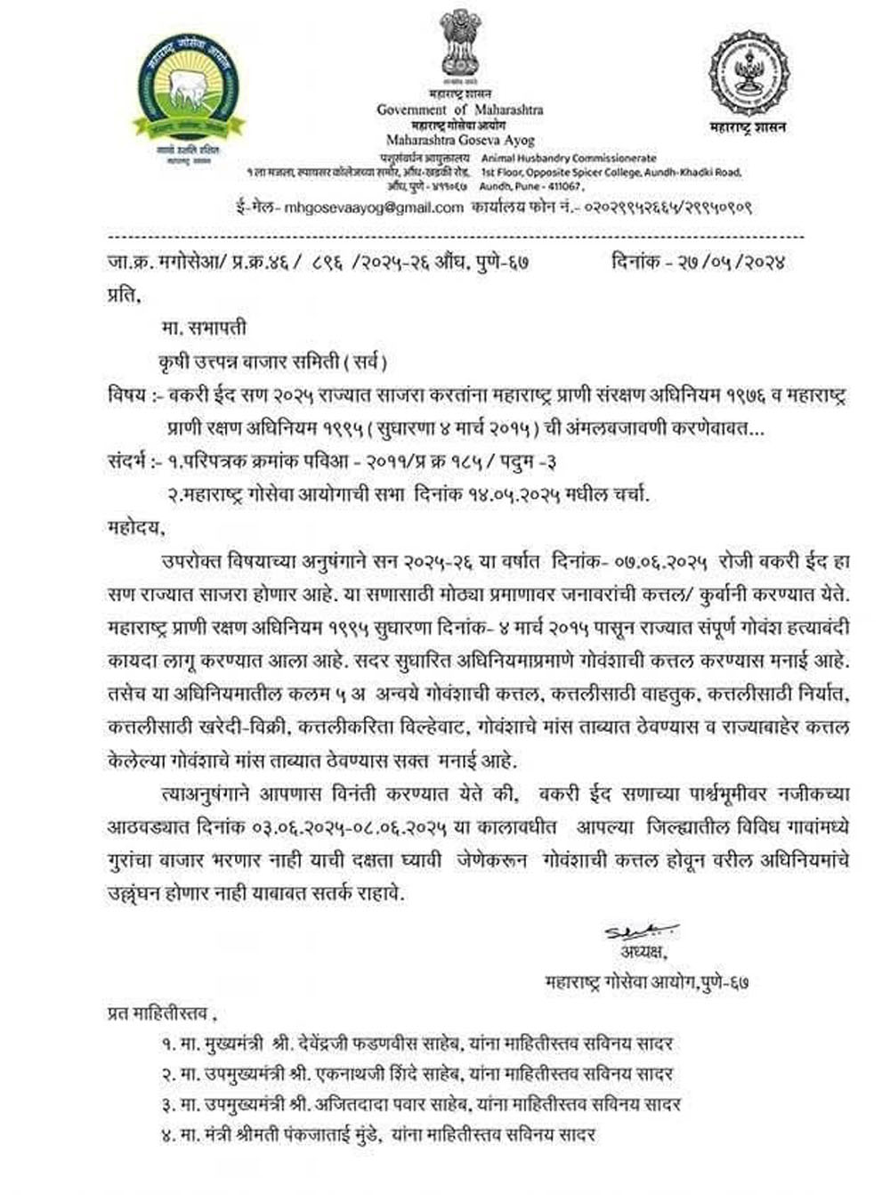 गोसेवा आयोगाचे पत्रक बेकायदेशीर.. कुर्बानी ईदसाठी जनावरांचे बाजार रितसर भरवावेत: वंचित बहुजन आघाडीची मागणी