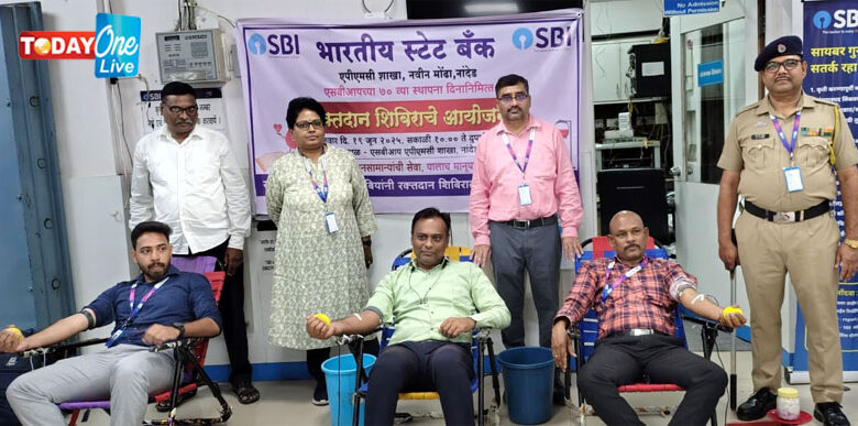 भारतीय स्टेट बँकेला एक जुलै रोजी ७० वर्ष पूर्ण होत आहेत, या निमित्त आयोजिज कारण्यात आलेल्या रक्तदान शिबिरात बॅंक कर्मचाऱ्यांसह बॅंक ग्राहकांनी रक्तदान शिबिरात सहभाग घेतला होता.