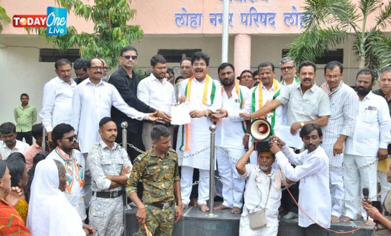 काँग्रेस पक्षाच्या वतीने लोहा नगरपरिषद प्रशासनाच्या विरोधात जोरदार मोर्चा