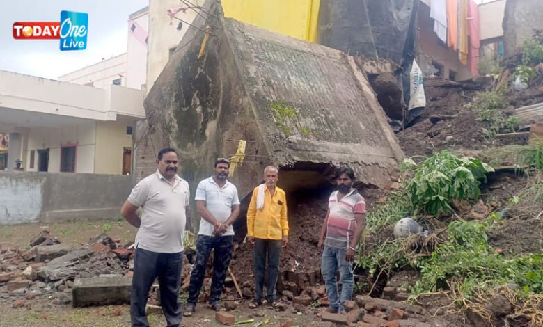 मुदखेड : शहरातील गेल्या दोन दिवसांपासून जोरदार पाऊस कोसळत असून धनगर टेकडी येथील पुरातन जागृत खंडोबा देवस्थान मंदिर जमीनदोस्त झाले आहे. मंदिराशेजारी असलेल्या घरांना तडे गेले असून सदरील मंदिर तातडीने दुरुस्त करुन देण्यात यावे अशी मागणी धनगर समाजाच्या वतीने तहसीलदार यांच्याकडे करण्यात आली आहे. दरम्यान तहसीलदार व नगरपालिकेचे मुख्याधिकारी यांनी घटनास्थळी भेट देऊन पंचनामा करण्याचे आदेश दिले आहेत.