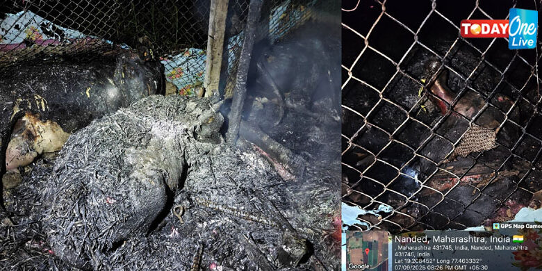 मुदखेड तालुका प्रतिनिधी मोहम्मद हकीम / मुदखेड तालुक्यातील मौजे डोंगरगाव येथील शेतकऱ्याच्या शेतातील गोठ्यावर अचानकपणे वीज कोसळून चार गाई दोन वासरे तसेच शेती उपयोगी साहित्य पूर्णतः जळून खाक झाल्याची दुर्दैवी घटना घडली आहे. या घटनेमुळे त्या शेतकऱ्यावर दुःखाचा डोंगर कोसळला असून सर्वत्र हळहळ व्यक्त करण्यात येत आहे.