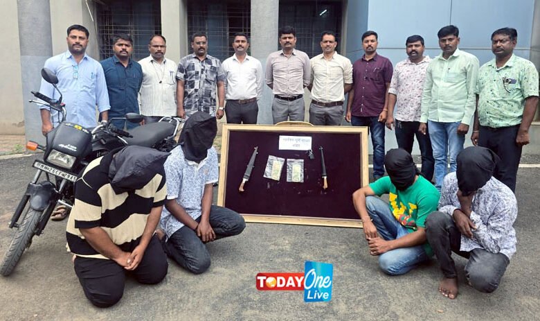 दिनांक 21 सप्टेंबर रोजी पो. उपनिरीक्षक मिलिंद सोनकांबळे, महेश कोरे आणि पथक पेट्रोलिंगदरम्यान कॅनल रोड, डी-मार्ट परिसरात असताना त्यांना खात्रीशीर गोपनीय माहिती मिळाली. पुयनी शिवारात काही इसम खंजरांसह बसल्याची माहिती मिळताच पथकाने छापा टाकून चार आरोपींना ताब्यात घेतले.