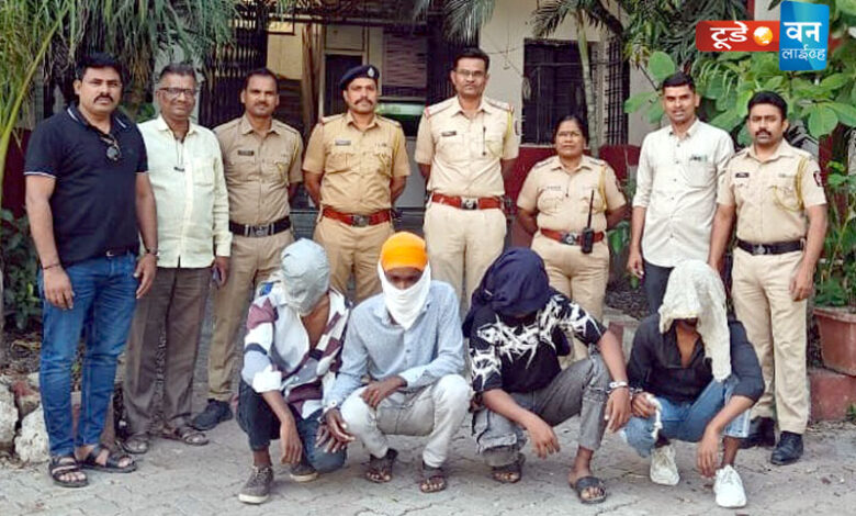 फिर्यादी आणि पथकाने तत्काळ त्या ठिकाणी धाड टाकली. पोलिसांना पाहून आरोपी पळण्याचा प्रयत्न करत होते, मात्र त्यापैकी चार जणांना झडप घालून पकडण्यात आले, तर एक जण फरार झाला. पंचासमक्ष घेतलेल्या झडतीत त्यांच्या ताब्यातून दरोड्याचे साहित्य मिळाले.