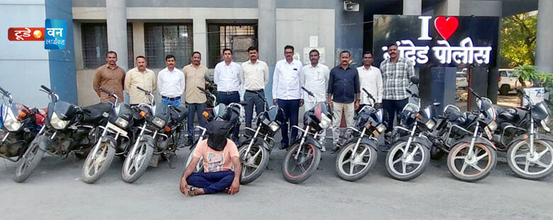 जप्त मुद्देमाल: वेगवेगळ्या कंपनींच्या ११ मोटारसायकली, एकूण किंमत – ५,१०,०००/-