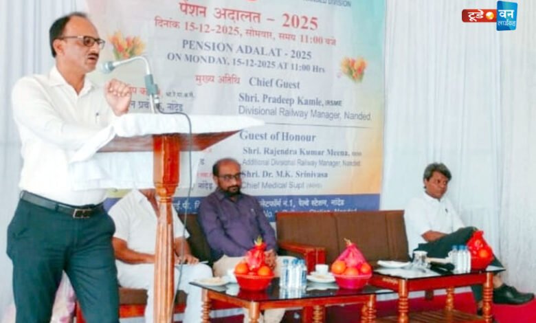 रेल्वेच्या सेवानिवृत्त कर्मचाऱ्यांच्या पेन्शनविषयक तक्रारींचे निवारण करण्यासाठी दिनांक 15.12.2025 रोजी रेल्वेकडून पेन्शन अदालतीचे यशस्वी आयोजन करण्यात आले. या कार्यक्रमास विभागीय रेल्वे व्यवस्थापक श्री. प्रदीप कामले हे प्रमुख पाहुणे म्हणून उपस्थित होते. अप्पर विभागीय रेल्वे व्यवस्थापक श्री. राजेंद्रकुमार मीणा यांनी विशेष पाहुणे म्हणून उपस्थिती दर्शविली. यावेळी मुख्य वैद्यकीय अधीक्षक श्री. एम. के. श्रीनिवास, सेवानिवृत्त रेल्वे कर्मचारी महासंघाचे कार्यकारी अध्यक्ष श्री. अशोक कांबळे, तसेच स्टेट बँक ऑफ इंडिया व बँक ऑफ महाराष्ट्रचे प्रतिनिधी, वरिष्ठ अधिकारी, कर्मचारी आणि मोठ्या संख्येने सेवानिवृत्त रेल्वे कर्मचारी उपस्थित होते.