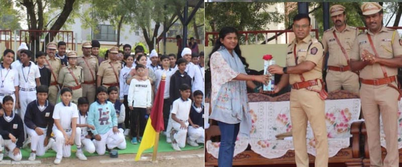 दिनांक 02 ते 08 जानेवारी दरम्यान नांदेड पोलीस दलातर्फे ‘रेजिंग डे साजरा केला जात असून त्या अनुषंगाने दिनांक 05 जानेवारी, 2024 रोजी सकाळी 08.00 ते 10.00 वा. च्या दरम्यान मा. श्रीकृष्ण कोकाटे, पोलीस अधिक्षक नादेड यांचे मार्गदर्शनाखाली पोलीस मुख्यालय नांदेड येथे, शहरातील विविध शाळेच्या विदयार्थ्यासाठी विविध कार्यकमाचे आयोजन करण्यात आले होते.