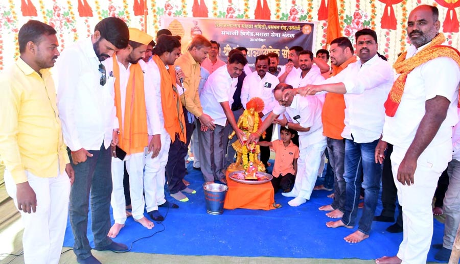 परभणीत आज छत्रपती संभाजी महाराज यांचा राज्याभिषेक सोहळा संभाजी ब्रिगेड च्या वतीने मोठ्या उत्साहामध्ये छत्रपती शिवाजी महाराज पुतळा जवळ साजरा करण्यात आला यावेळी छत्रपती संभाजी महाराज यांच्या पुतळ्यास दुग्ध अभिषेक करून हा सोहळा साजरा करण्यात आला यावेळी माजी महापौर प्रताप भैया देशमुख सुशील भैया देशमुख, डॉ. केदार खटिंग ,ओमप्रकाश यादव भगवान वाघमारे विशाल बुधवंत शंकर भागवत, रामेश्वर आवरगंड, किशोर रनेर ,गणेश घाडगे बाळासाहेब रेंगे ,स्वराज सिंग परीहार ,दिलीपराव देशमुख, प्रदीप भालेराव मुगाची बुरुड रामप्रसाद रनेर, प्रल्हाद मोरे ,कांचन कारेगावकर ,अमोल जाधव,अर्जुन पंडित,धराजी भुसारे, सुभाष जावळे यांची उपस्थिती होती तर कार्यक्रमाचे आयोजन संभाजी ब्रिगेड चे नितीन देशमुख गजानन जोगदंड बालाजी मोहिते यांनी केले होते