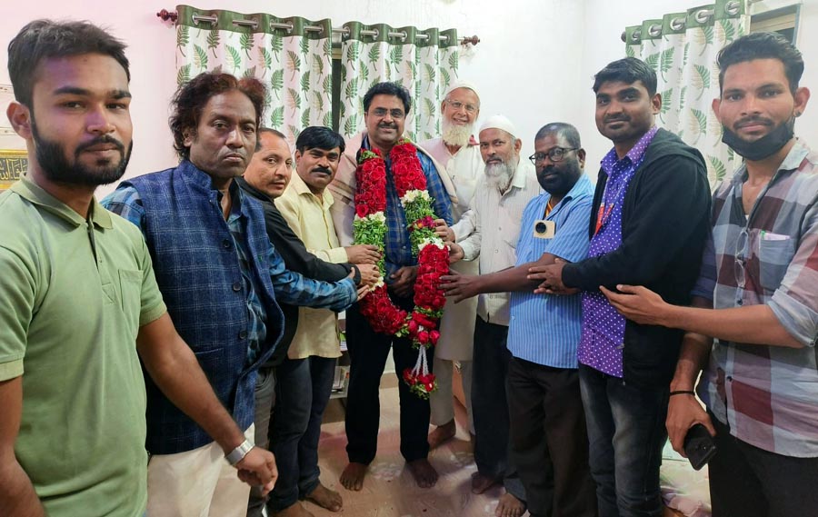 यावेळी एकता सेवाभावी संस्थेचे संस्थापक अध्यक्ष अजमत खान, ज्येष्ठ समाजसेवक शेख अब्दुल करीम साहब, मोईन खान, शेख मुस्तफा, शायर कवी डॉ. मुनीब हनफी, ज्येष्ठ समाजसेवक शेख अब्दुल करीम साहब, अभिनेते बाबुराव साईना, सय्यद अली, दयावान सरकार महाराष्ट्र राज्य परभणी जिल्हा कार्याध्यक्ष तथा समाजहित अभियान प्रतिष्ठान संस्थापक अध्यक्ष तथा संपादक समाजहित न्यूज प्रमोद अंभोरे, भीमा कोरेगाव मित्रमंडळाचे अध्यक्ष संदीप वायवळ आदींचे उपस्थिती होती. हा सत्कार केल्याबद्दल शेख मुशीर अहेमद सर्व उपस्थित्यांचे मान्यवरांचे आभार मानले…