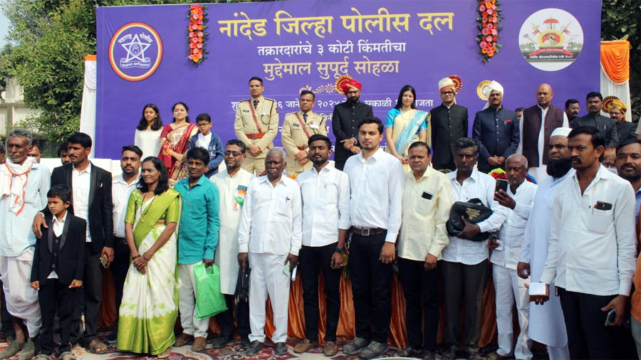 26 जानेवारी 2024 रोजी प्रजासत्तक दिनाचे निमित्ताने पोलीस मुख्यालय, नांदेड येथील कवायत मैदानावर शासकीय ध्वजारोहन संपन्न झाल्यानंतर किंमती मुद्देमाल सुपुर्द करण्याचा कार्यक्रम नांदेड जिल्हा पोलीस दलातर्फे आयोजीत करण्यात आला होता. यावेळी विशेष पोलीस महानिरीक्षक, नांदेड परिक्षेत्र, नांदेड, डॉ. शशीकांत महावरकर, जिल्हाधिकारी, नांदेड, मा. श्री अभिजित राऊत, मा. आ. अमर राजूरकर, पोलीस अधिक्षक, नांदेड, श्री श्रीकृष्ण कोकाटे, मुख्य कार्यकारी अधिकारी, जिल्हा परिषद नांदेड, श्रीमती मिनल करनवाल, आयुक्त, नांदेड वाघाळा महानगर पोलीका, नांदेड डॉ महेशकुमार डोईफोडे, अपर जिल्हाधिकारी, श्री पी. एस. बोरगांवकर, अपर पोलीस अधीक्षक श्री अबिनाश कुमार, निवासी उप जिल्हाधिकारी, श्री महेश वडदकर, पोलीस उप अधिक्षक (गृह), डॉ. अश्विनी जगताप, श्रीमती स्नेहल कोकाटे यांचे हस्ते फिर्यादी यांना किंमती मुद्देदेमाल परत करण्यात आला.