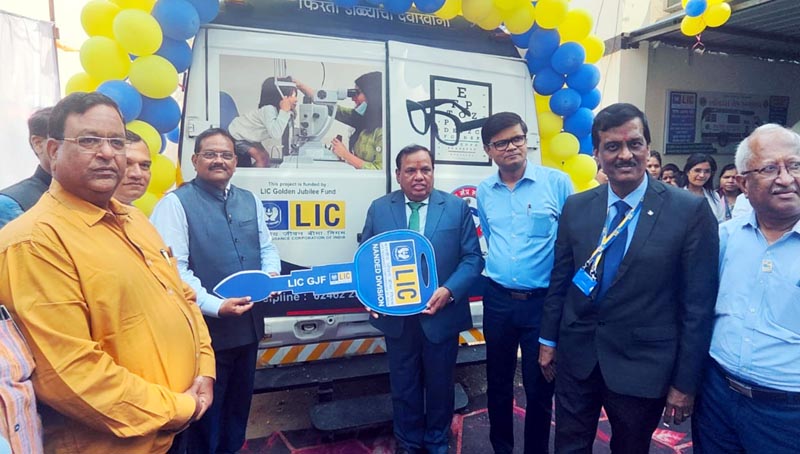 भारतीय आयुर्विमा महामंडळ च्या गोल्डन जुबली फाउंडेशन तर्फे स्कूल बस आणि नेत्र तपासणी व्हॅन चे लोकार्पण.