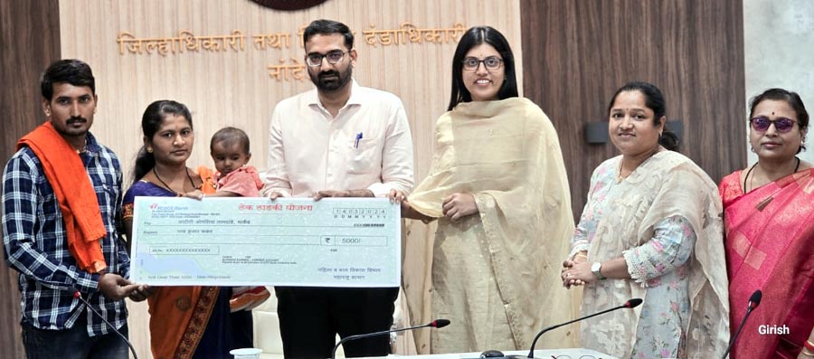 नांदेड,14- मुलीच्या जन्मास प्रोत्साहन देऊन मुलींचा जन्मदर वाढविणे, मुलीच्या शिक्षणास चालना देणे, मुलींचा मृत्यू कमी करणे व बालविवाह रोखणे, कुपोषण कमी करणे, शाळाबाह्य मुलींचे प्रमाण शून्यावर आणण्यासाठी प्रोत्साहित करणे, एकूणच मुलींच्या सक्षमीकरणासाठी राज्य शासनाच्या वतीने लेक लाडकी योजना राबविण्यात येत असून या योजनेअंतर्गत आज गुरुवार दिनांक 14 मार्च रोजी जिल्ह्यातील 201 लाभार्थ्यांना या योजनेतील पहिल्या हप्त्याचा लाभ देण्यात आला. कु. अद्विका अनिकेत पोहरे, वाडी बुद्रुक तालुका नांदेड व कु. आदिती ओमशिवा लामदांडे, मार्कंड तालुका नांदेड या दोन लाभार्थ्यांना प्रातिनिधिक स्वरूपात आज जिल्हाधिकारी अभिजीत राऊत व जिल्हा परिषदेच्या मुख्य कार्यकारी अधिकारी मिनल करनवाल यांच्या हस्ते धनादेशाचे वाटप करण्यात आले. यावेळी महिला बाल विकास विभागाच्या उप मुख्य कार्यकारी अधिकारी रेखा काळम-कदम यांची उपस्थिती होती.