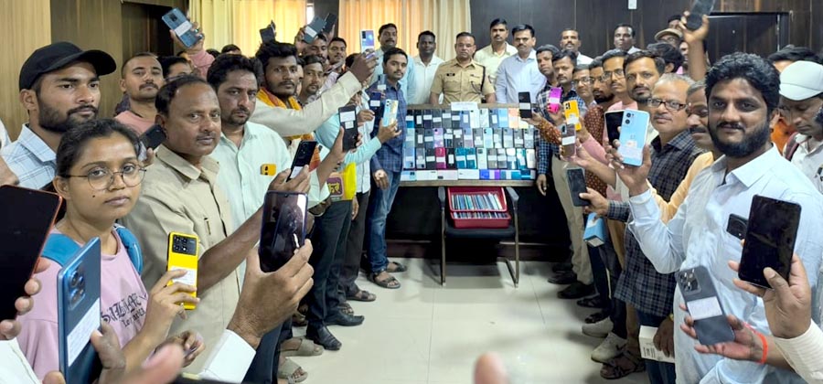 नांदेड जिल्हयातील पोलीस स्टेशनचे अंमलदार व स्था.गु.शाचे पथकाने जिल्हयातील गहाळ झालेल्या मोबाईलचा वेगवेगळया ठिकाणी जावून शोध घेवुन एकूण 164 मोबाईल किंमत 28,25,300/- रूपयाचे हस्तगत केले आहेत. त्याचे आज एकत्रितरीत्या मा. श्रीकृष्ण कोकाटे पोलीस अधिक्षक, नांदेड. यांच्या हस्ते 70 मोबाईलचे वाटप करण्यात आले आहे. उर्वरीत हस्तगत झालेले मोबाईलचे IMEI क्रमांकाची माहिती नांदेड पोलीस दलाचे Facebook Page (Nanded Police) व Twitter (@Nanded Police) वर अपलोड करण्यात आली आहे. त्यापैकी नागरीकांनी आपल्या हरवलेल्या मोबाईलचा IMEI क्रमांक ओळखुन सायबर पो.स्टे. नांदेड येथून मोबाईल घेवून जाण्याचे अवाहन मा. पोलीस अधिक्षक श्री. श्रीकृष्ण कोकाटे पोलीस अधिक्षक यांनी केले आहे.
