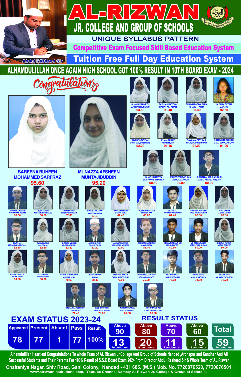 अल रिझवान ज्युनिअर कॉलेज ऍण्ड ग्रुप ऑफ स्कूल दहावीचा १००% निकाल