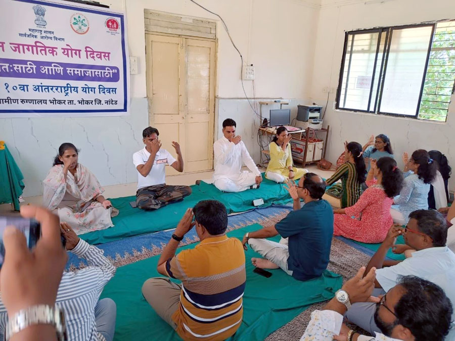 १० वा ” जागतिक योग दिवस ” ग्रामीण रुग्णालय भोकर येथे साजरा