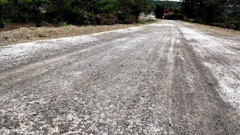 वाशी गावाजवळील सिमेंट रस्त्यावर स्टील वापरले नाही शासनाच्या अंदाज पत्रकाला फाटा