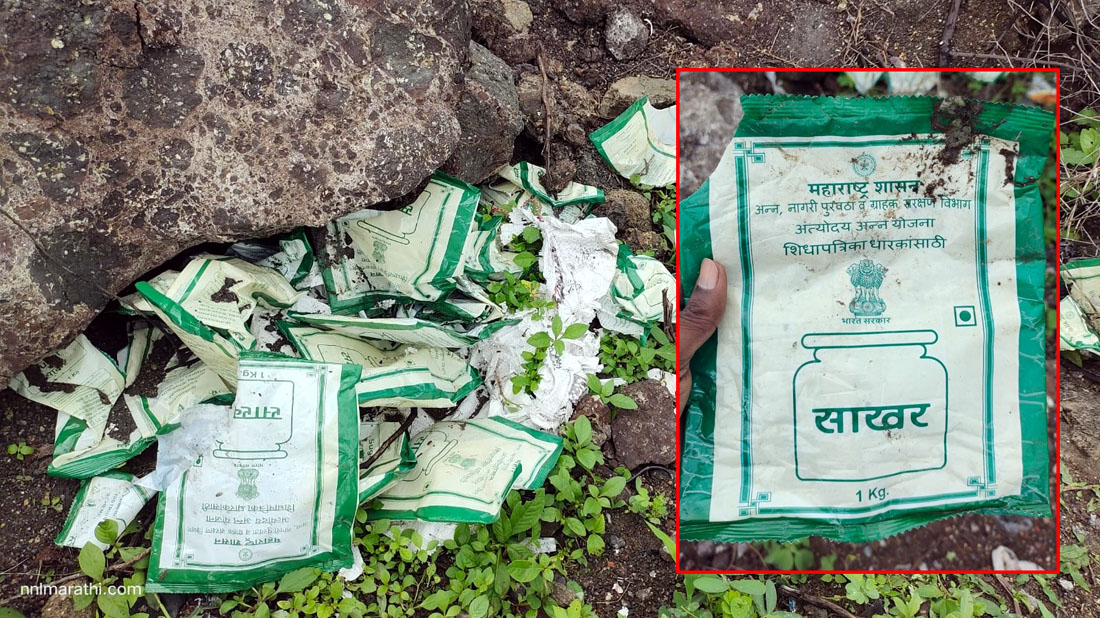 हिमायतनगर तालुक्यातील अंत्योदय लाभधारकाच्या साखर वाटपात हेराफेरी; शेकडो कोरी पॉकेट कचऱ्याच्या ढिगाऱ्यावर..