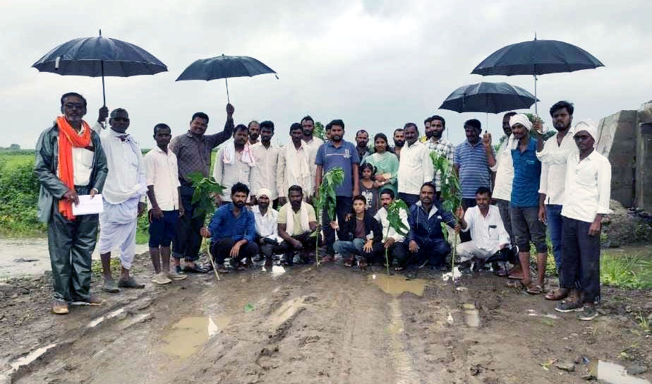 हिमायतनगर, पळसपूर, डोल्हारी गावचा रस्ता रखडला; ग्रामस्थांनी रस्त्यावर बेशरमाचे झाडे लावून लोकप्रतिनिधींचा केला निषेध