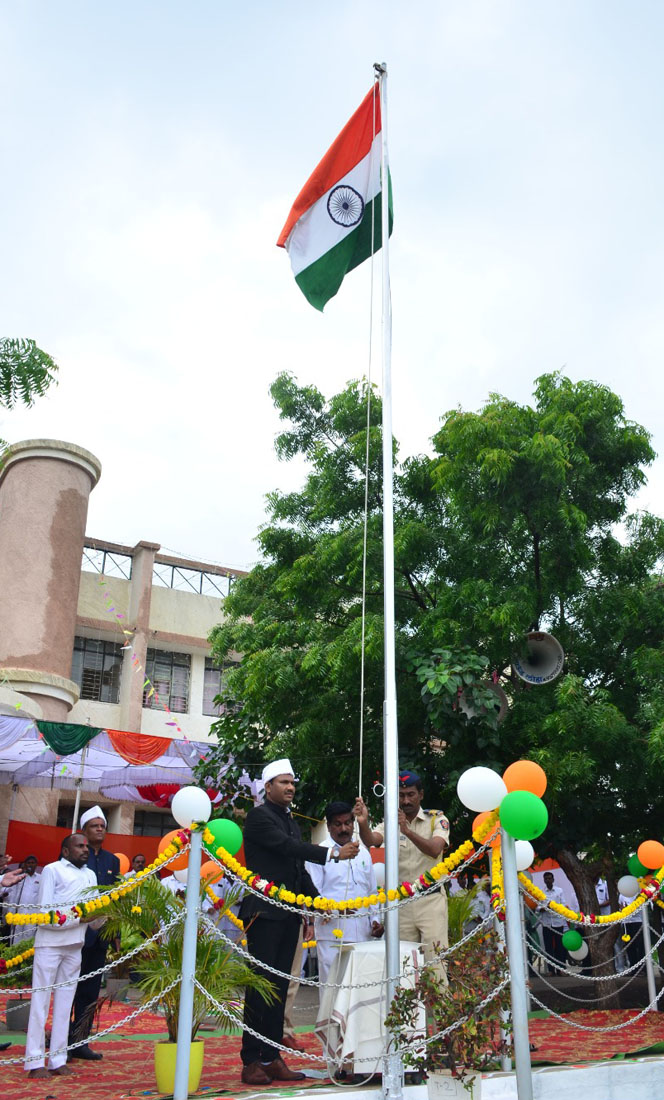 भारतीय स्वातंत्र दिना निमित्त लोहा तहसिल कार्यालयाच्या प्रांगनात ध्वजारोहन करतांना तहसिलदार विठल परळीकर