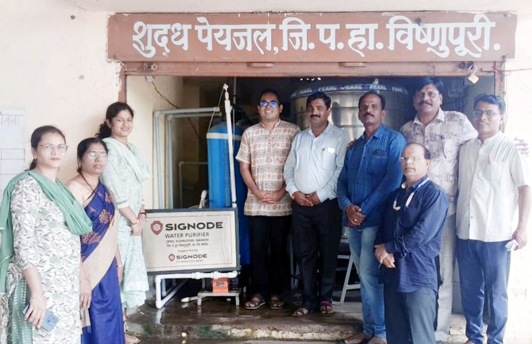 विष्णुपूरी दि. 17 आँगस्ट. जिल्ह्यातील ग्रामीण भागातील विद्यार्थी स्पर्धेच्या युगात टिकावा, त्यांना उच्च व चांगल्या दर्जाच्या सुविधा तथा शिक्षण मिळावे, जिल्हा परिषदेच्या शाळांचा दर्जा सुधारावा, शाळेत भौतिक सुविधा उपलब्ध व्हाव्यात, या उदात्त हेतूने जिल्हा परिषद शाळेतील विद्यार्थ्यांच्या सर्वांगिण विकासासाठी लोकसहभाग, कारपोरेट कंपन्यांचे सामुदायिक सामाजिक निधी अर्थात सि.एस.आर. फंड सहभागातून गगनभरारी हा नाविन्यपूर्ण उपक्रम जिल्हा परिषद नांदेडच्या मुख्य कार्यकारी अधिकारी मीनल करनवाल यांनी राबविला आहे. याच उपक्रमातून प्रेरित होवून राज्य पुरस्कार प्राप्त शिक्षक राजेश कुलकर्णी यांनी त्यांचे माजी विद्यार्थी प्रा. डॉ ओमप्रकाश दरक यांना मागणी केली असता त्यांनी हैद्राबाद येथील सिग्नोड कंपनीतील अभियंता निखिल सोनी यांच्यावतीने कंपनीच्या सि.एस.आर.फंडातून एक लक्ष साठ हजार रुपयांचा शुध्द पेयजल प्रकल्प नुकताच विद्यार्थ्यांना समर्पित केला.