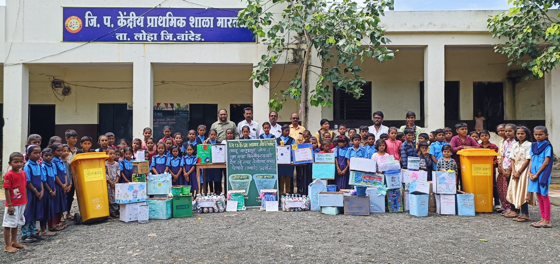 नांदेड,२४- मारतळा येथील जिल्हा परिषद केंद्रीय प्राथमिक शाळेतील विद्यार्थ्यांनी टाकाऊ वस्तूंपासून आकर्षक कचरा पेट्या तयार करून एक उत्तम उदाहरण घालून दिले आहे. या उपक्रमाचा उद्देश विद्यार्थ्यांना बालवयातच ओला आणि सुका कचरा वर्गीकरणाचे महत्त्व समजावून देणे हा होता.