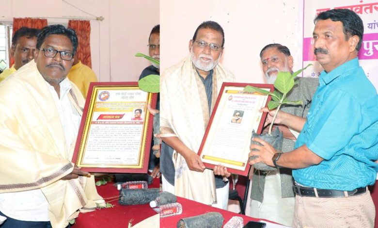 दिमाखदार सोहळ्यात पुरस्कार प्राप्त पत्रकार संजिव कुलकर्णी व अनिल मादसवार यांचा सन्मानपत्र देऊन झाला गौरव