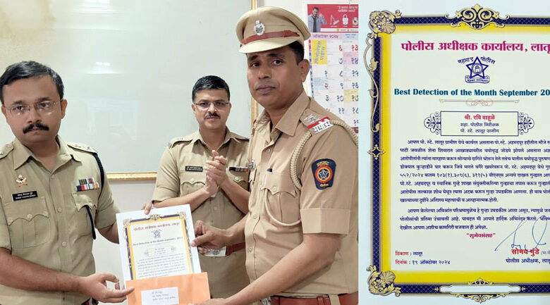 यात पोलीस खात्यातील सह. पोलीस निरीक्षक पोलीस स्टेशन लातूर ग्रामीण श्री रवि वाहुळे यांनी तपासण्या दृष्टीने व आरोपींना पकडण्यात महत्त्वपूर्ण व आव्हानात्मक कामगिरी बजावली. याबद्दल पोलिस अधीक्षक लातूर श्री सोमय मुंडे यांनी हार्दिक अभिनंदन व गौरव केले..