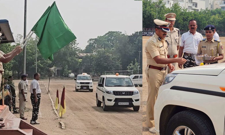 सदर 22 वाहनाचे पोलीस मुख्यालय नांदेड येथे मा. श्री शहाजी उमाप, पोलीस उप महानिरीक्षक नांदेड परीक्षेत्र नांदेड, मा. श्री.अबिनाश कुमार, पोलीस अधीक्षक नांदेड यांचे हस्ते सदर वाहनांना हिरवा अंडा दाखवुन पोलीस कर्तव्या करीता रवाना करण्यात आले.