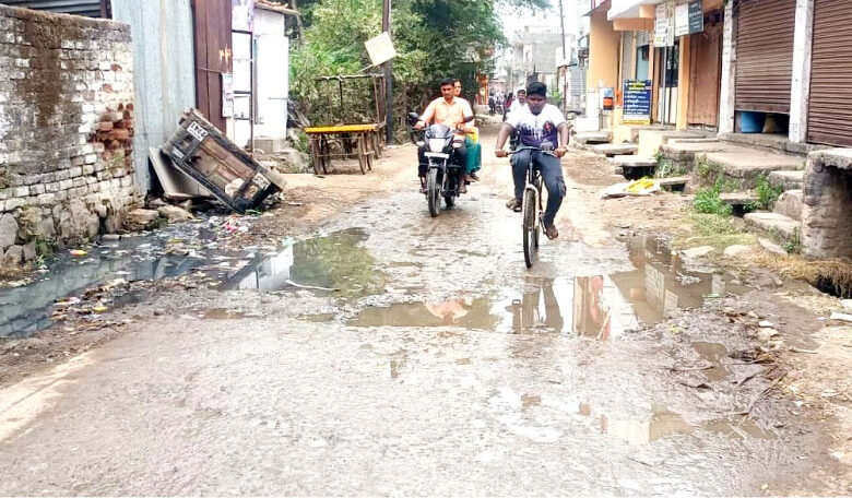 लोहा नगर परिषदेच्या अक्षम्य दुर्लक्षामुळे भाजीमंडई पासुन इंदिरा नगर मध्ये जाना-या रस्त्यावर नालीचे घाण पाणी येत असुन पादचा-यांना घाणीतून रत्या काढावा लागत आहे. छाया – विनोद महाबळे.